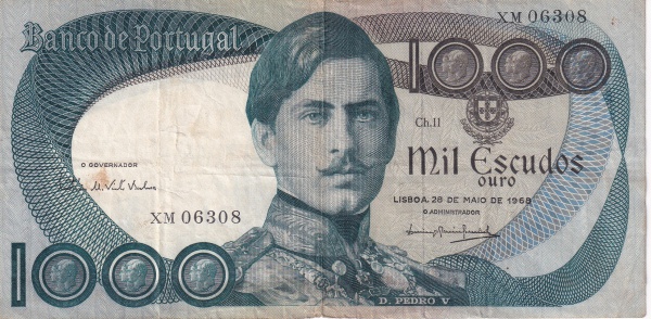 • Portugal - P-175 - Cédula de 1000 Escudos 1968 - D Pedro V - MBC - Europa