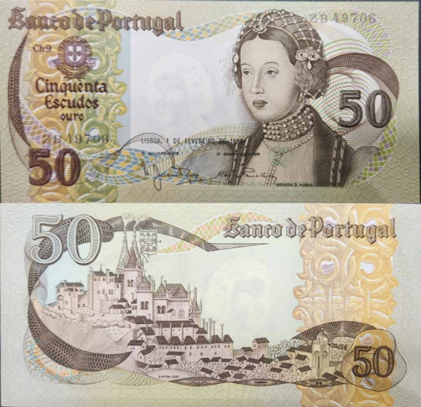• Portugal - P-174b - Cédula de 50 Escudos 1980 Flor de Estampa - Infanta Dona Maria - Europa