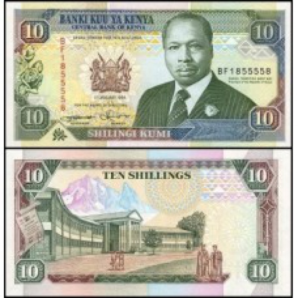 • Quênia - P-24f - Cédula 10 Shillings 1994 - Flor de Estampa - Daniel Toroitich arap Moi - Kenya - Africa