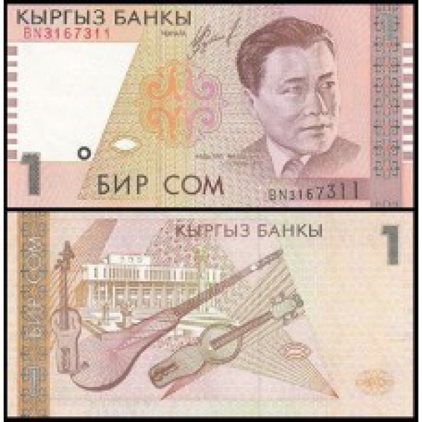 • Quirguistão - P-15a - Cédula de 1 Som 1999 Abdylas Maldybaev - Flor de Estampa - ÁSIA