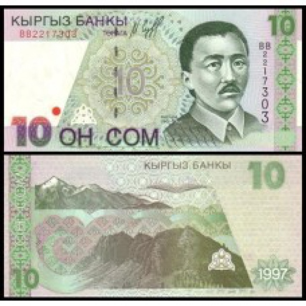 • Quirguistão - P-14a - Cédula de 10 Som 1997 - Flor de Estampa - ÁSIA