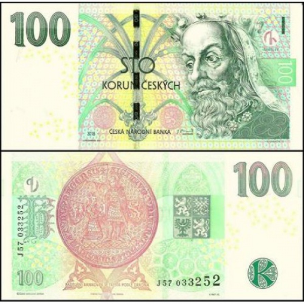 • Republica Tcheca - P-18g - Cédula de 100 Korun 2018 Flor de Estampa - Czech Republic - Europa