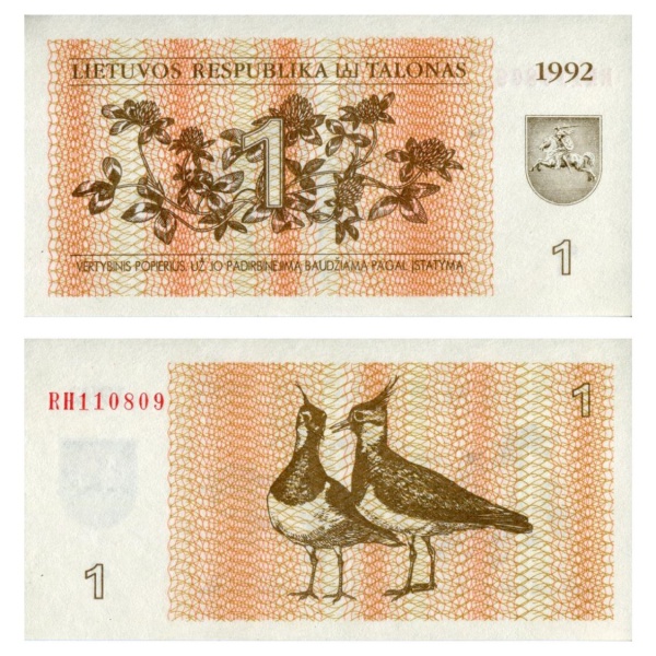 • Lituania - Cédula de 1 Talonas 1992 - P-39a - Flor de Estampa