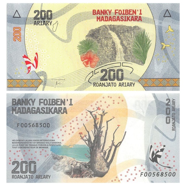 • Madagaskar - Cédula de 200 Ariany 2017 - P-98a - Flor de Estampa