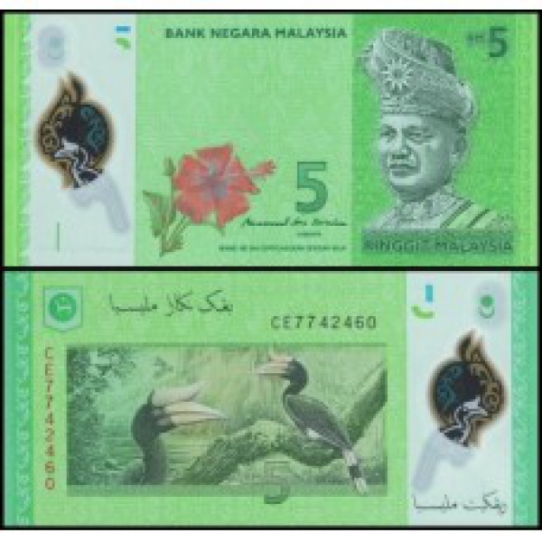 • Malasia - P-52b - Cédula de 5 Ringgit 2017 - Polimero - Tunku Abdul Rahman - Flor de Estampa