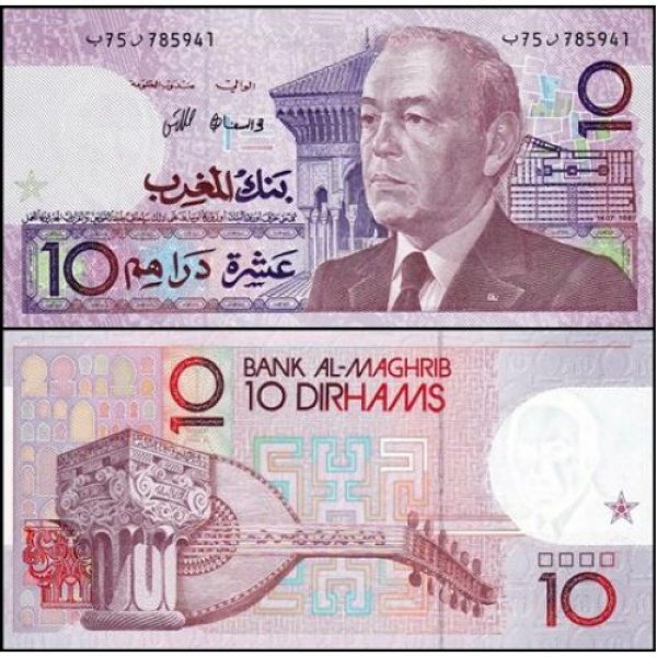• Marrocos - P-63a - Cédula de 10 Dirhams 1987 Flor de Estampa - Rei Hassan II - Morocco - Africa