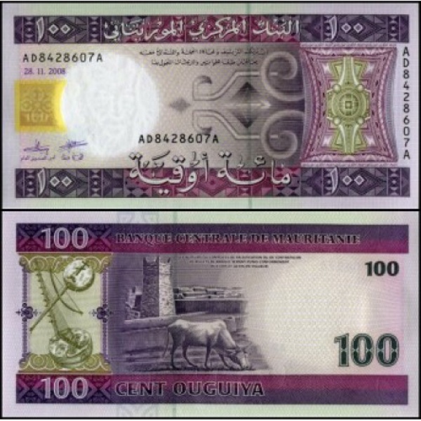 • Mauritania - P-10c - Cédula de 100 Ouguyia 2008 Flor de Estampa - África