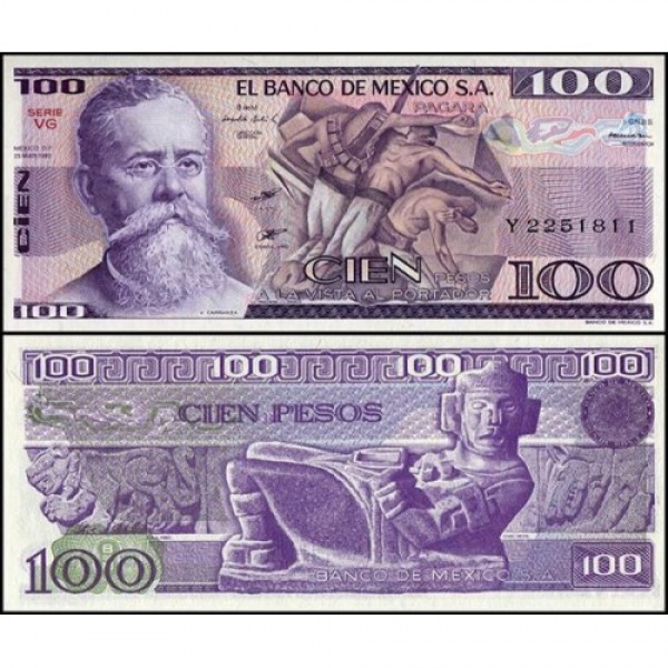 • México - P-74c.22 - Cédula de100 Pesos 1982 V. Carranza - Série VG - Flor de Estampa - América