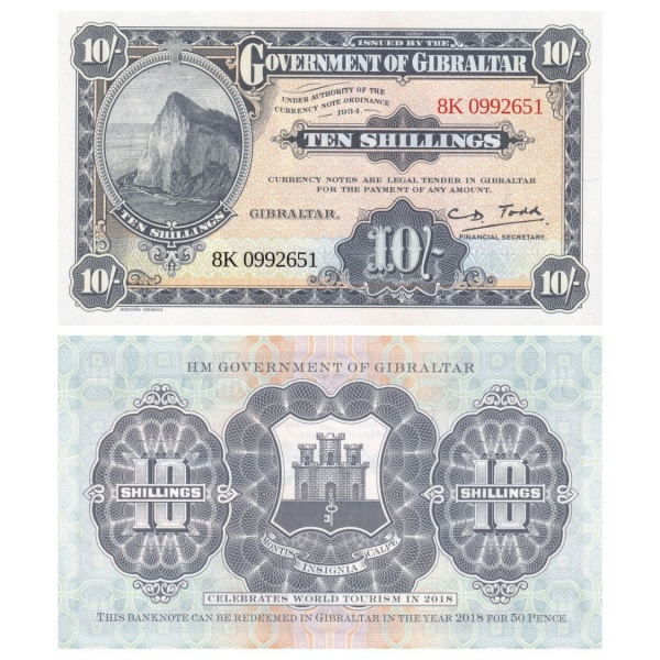• Gibraltar - Cédula de 10 Shillings 2018 - P-41a - Flor de Estampa