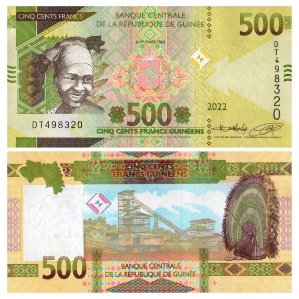• Guiné - Cédula de 500 Francs 2022 - P-52b - Flor de Estampa