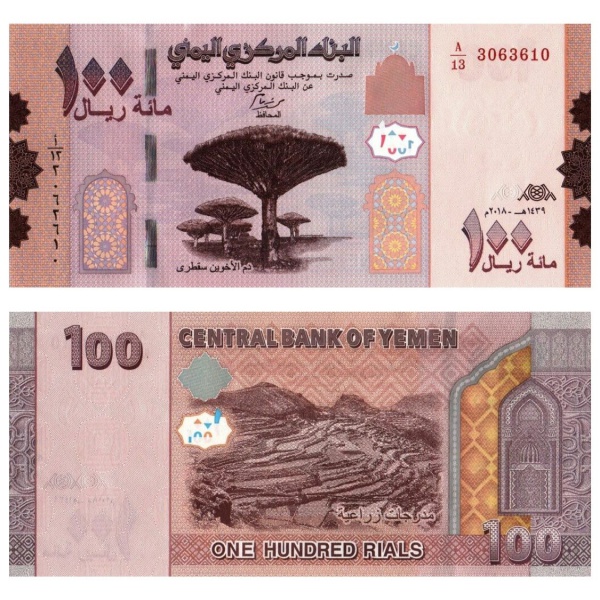 • Iemen - Cédula de 100 Ryals 2018 - P-37a - Flor de Estampa