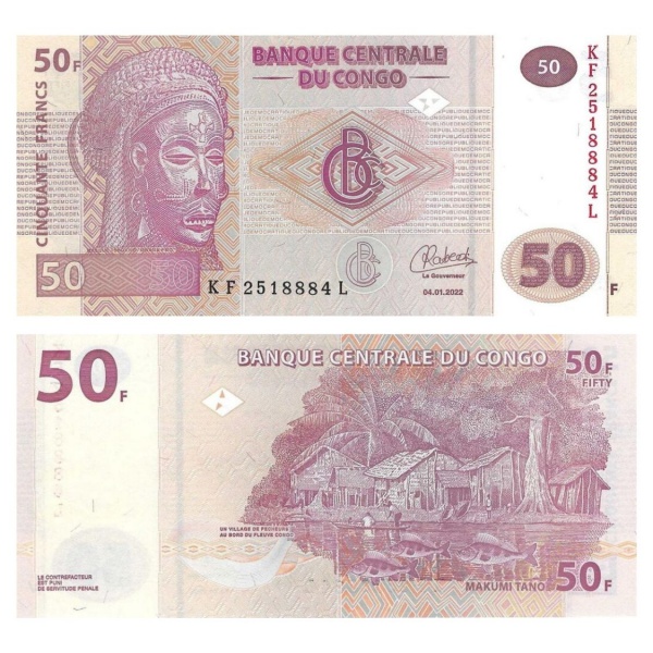 • Congo - Cédula de 50 Francs 2022 - P-97Ab - Flor de Estampa