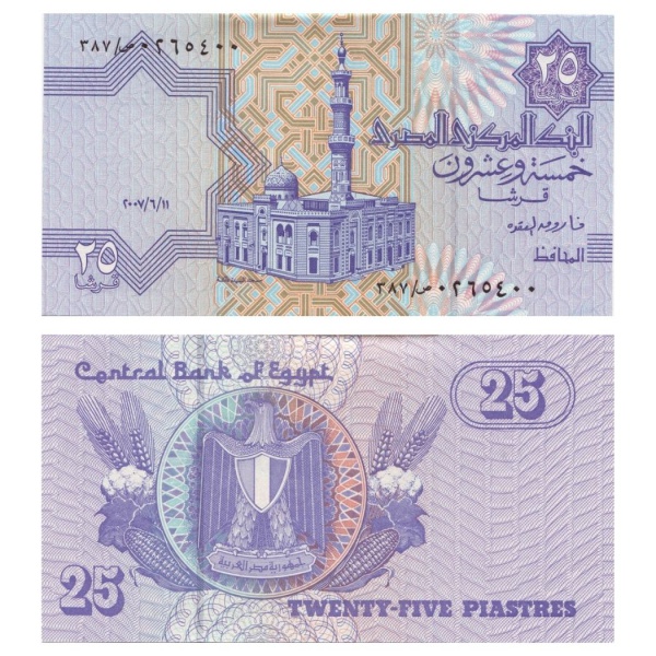 • Egito - Cédula de 25 Piastres 2007 - P-57h - Flor de Estampa