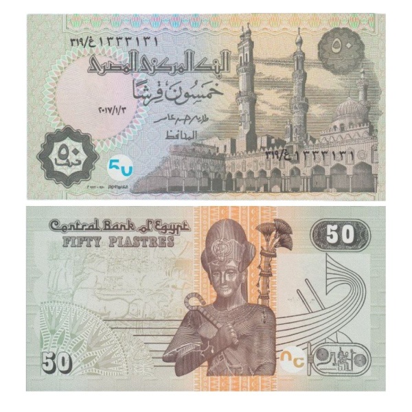• Egito - Cédula de 50 Piastres 2017 - P-70a - Flor de Estampa