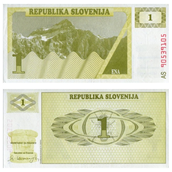 • Eslovenia - Cédula de 1 Tolar 1990 - P-1a - Flor de Estampa