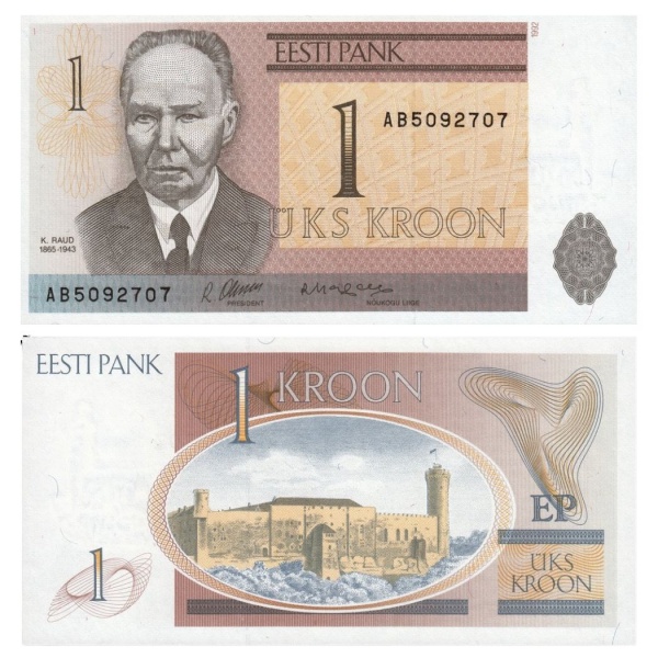 • EstÔnia - Cédula de 1 Kroon 1992 - P69 - Flor de Estampa