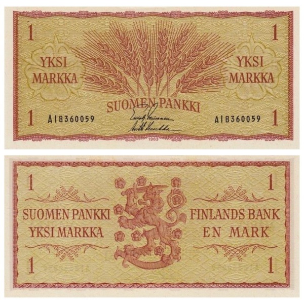 • Finlândia - Cédula de 1 Markkaa 1963 - P-09a.9 - Flor de Estampa