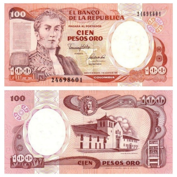 • Colômbia - Cédula de 100 Pesos Oro 1991 - P-426Aa - Flor de Estampa