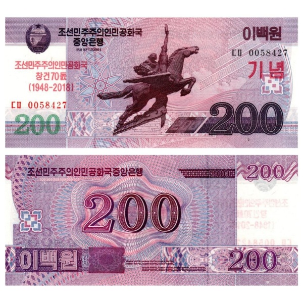 • Coréia do Norte - Cédula de 200 Won 2018 - P-CS21a - Comemorativa - Flor de Estampa
