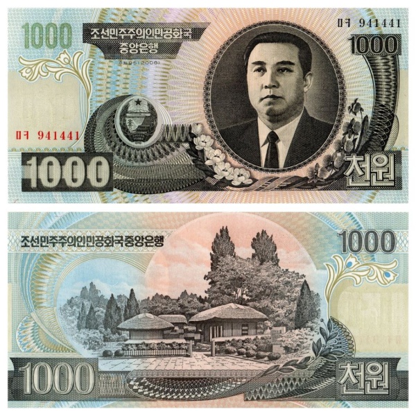 • Coréia do Norte - Cédula de 1000 Won 2006 - P-45b - Flor de Estampa