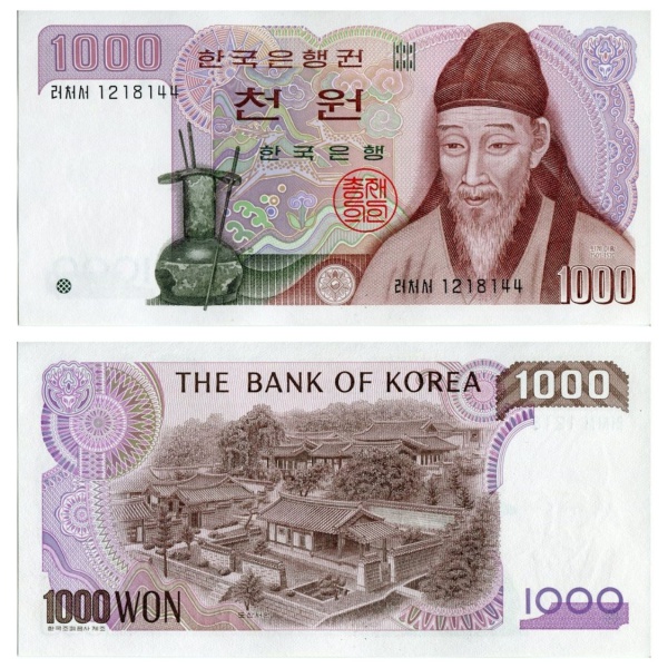 • Coréia do Sul - Cédula de 1000 Won 1983 - P-47a - Flor de Estampa
