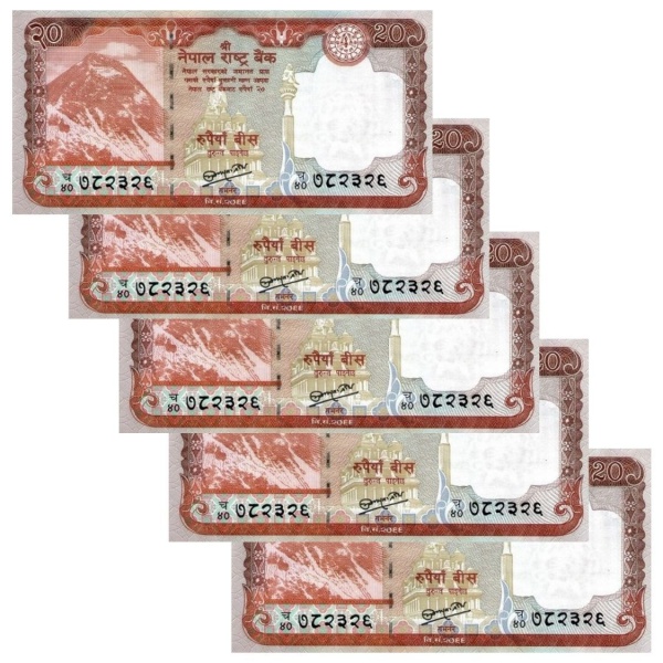 • Nepal - 5 Cédulas de 20 Rupees 2012 - P-71 - Sequência - Flor de Estampa