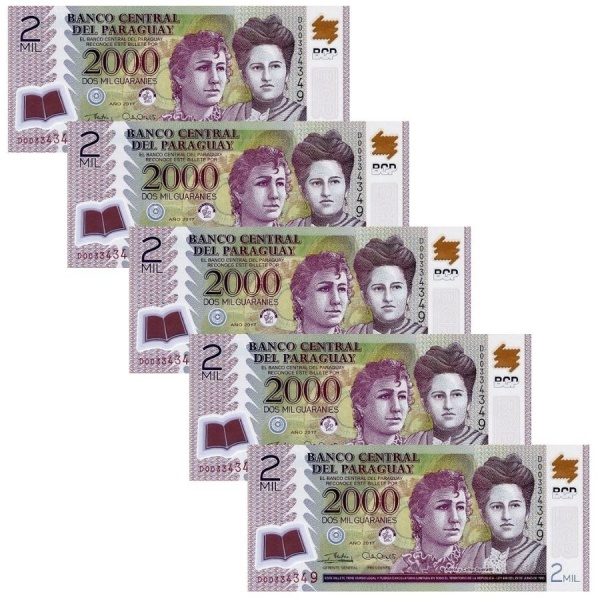 • Paraguai - 5 Cédulas de 2000 Guaranis 2017 - P-228d - Polimero - FE