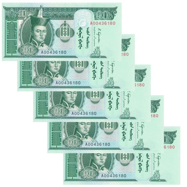 • Mongolia - 5 Cédulas de 20 Togrog 2020 - P-63k - Sequência - Flor de Estampa