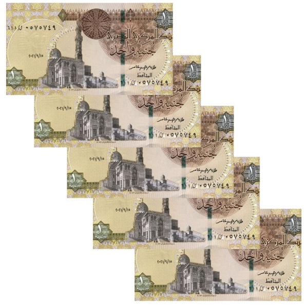 • Egito - 5 Cédulas de 1 Pound 2021 - P-71h - Sequência - FE