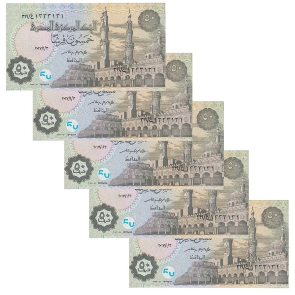 • Egito - 5 Cédulas de 50 Piastres 2017 - P-70a - Sequência - FE