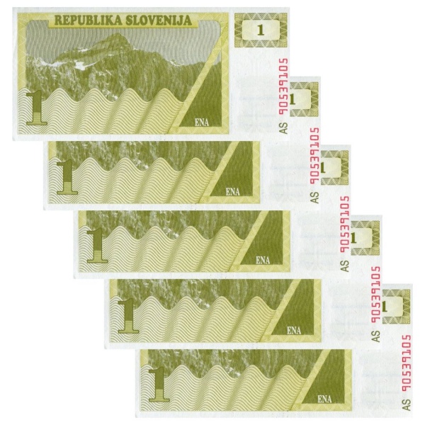 • Eslovenia - 5 Cédulas de 1 Tolar 1990 - P-1a - Sequência - FE