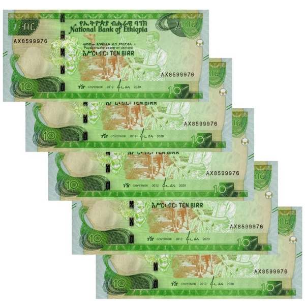 • Etiópia - 5 Cédulas de 10 Birr 2020 - P-53a - 2012 Ephiopian Era - Sequência - FE