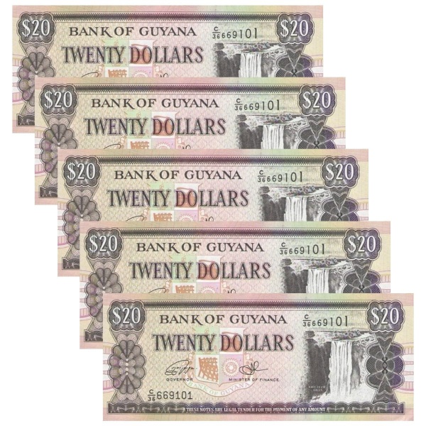 • Guiana - 5 Cédulas de 20 Dollars 2016 - P-30f - Sequência - FE