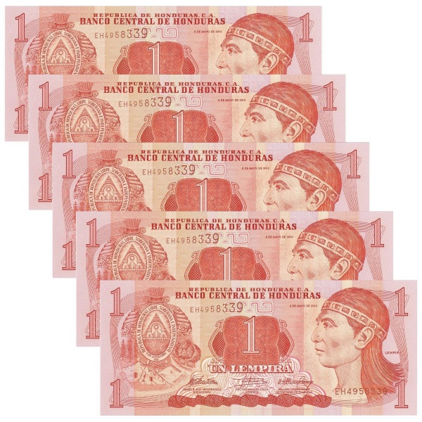 • Honduras - 5 Cédulas de 1 Lempira 2010 - P-89b - Sequência - FE
