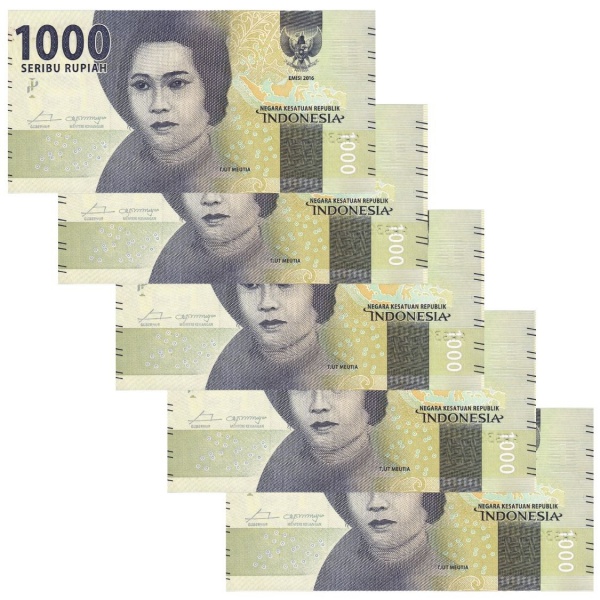 • Indonesia - 5 Cédulas de 1000 Rupiah 2016 - P-154a - Tjut Meutia - Sequência - Flor de Estampa