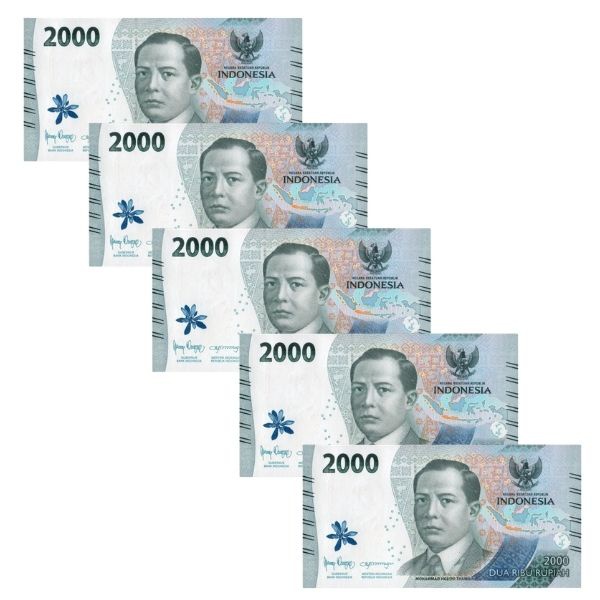 • Indonésia - 5 Cédulas de 2000 Rupiah 2022 - P-163a - Mohamad H. Thamrin - FE