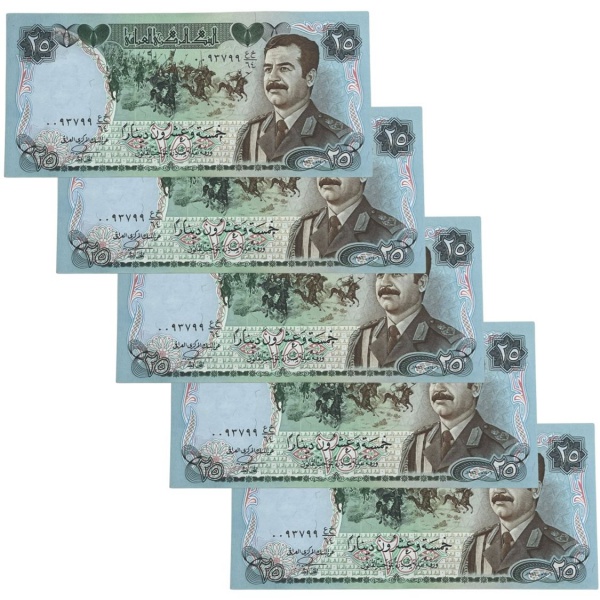 • Iraque - 5 Cédulas de 25 Dinars 1986 - P-73a - Saddam Hussein - Sob/FE