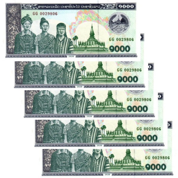 • Laos - 5 Cédulas de 1000 Kip 2020 - P-32Ac - Sequência - Flor de Estampa