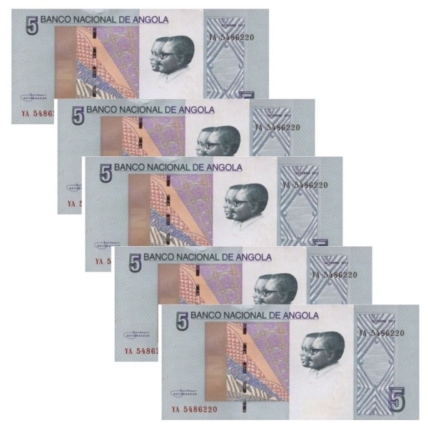 • Angola - 5 Cédulas de 5 Kwanzas 2012 - P-151Aa - FE
