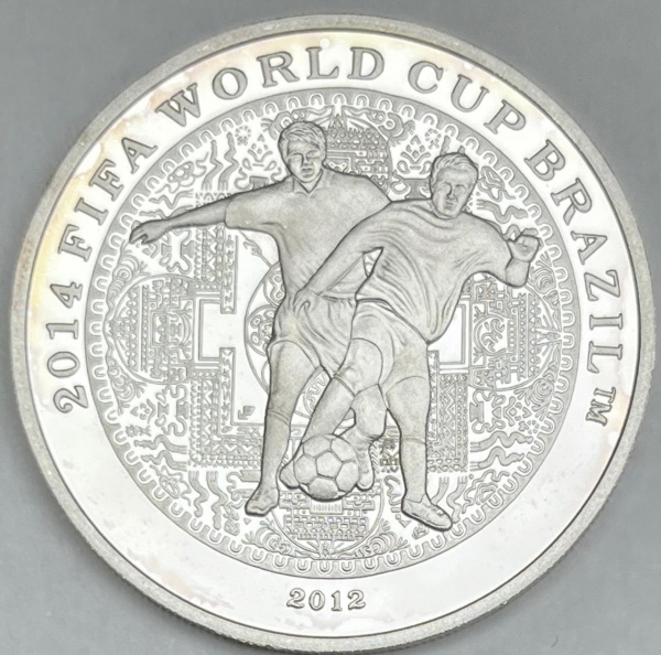 • Moeda da Coréia do Norte - 1000 Won 2012 - Prata 0.999 - 20.0g - 38.0mm -  Proof - Comemorativa Copa do Mundo de Futebol FIFA 2014 - Brasil - Baixissima emissão - Na cápsula"
