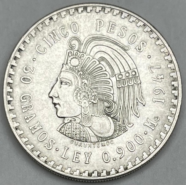 • Moeda do México - 5 Pesos 1947 - Prata 0.900  30.0g - 40.0mm - Circulação Comum - Rara - Na Cápsula