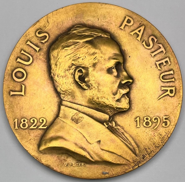 • Grande Medalha da França - 1907 - Bronze - 129.0g - 67.0mm - Em Memósria de Louis Pasteur - Original assinada por V.Peter - Na Capsula