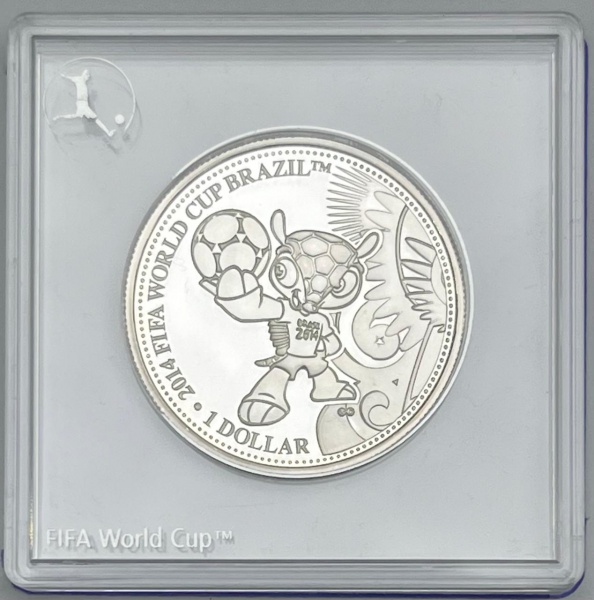 • Moeda das Ilhas Cook - 1 Dollar 2013  Prata 0.333 - 7.3g - 30mm - Proof - Coleção Copa do Mundo FIFA Brasil 2014 / Mascote - Na capsula Original de Acrilico - Rara - Emissão 25.000 unidades