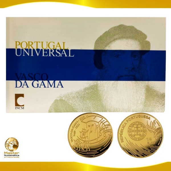 • Moeda de Portugal - 1/4 de EURO 2007 - Ouro 0.999 - 1.56g / 14.0mm - Proof - Vasco da Gama - Série Portugal Universal - Cartela original da Casa da Moeda de Portugal