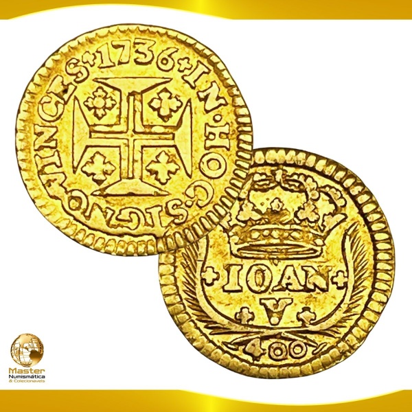 • Moeda de Portugal - 400 Reis 1736 - Ouro 0.917 - 1.0g - 14.0mm - Rei João V - Excelente estado de Conservação - Rara - Catalogo marca 295 Euros