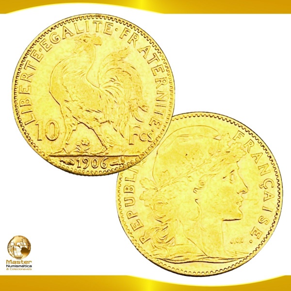 • Moeda da França - 10 Francos 1906 - Ouro 0.900 - 3.23g - 19.0mm - Terceira República (1870 - 1941) - Excelente Estado de Conservação
