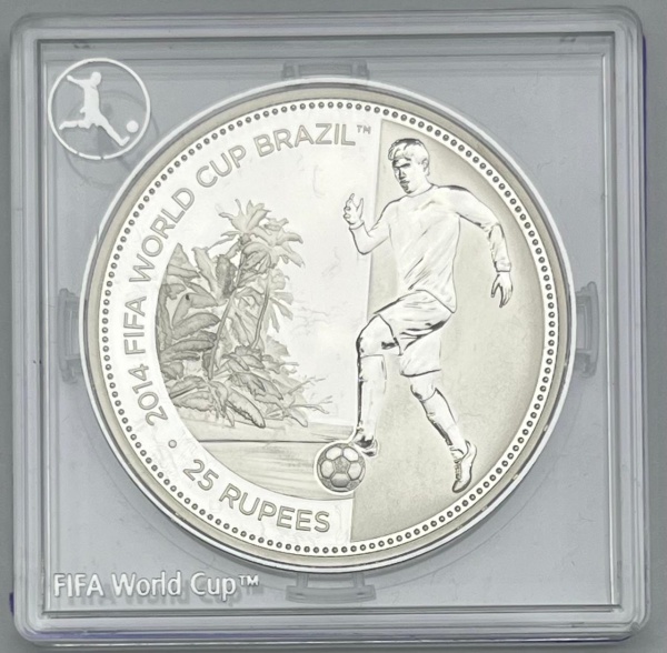 • Moeda de Seicheles - 25 Rupias 2012 - Prata 0.925 - 20.0g - 38.6mm - Proof  - Coleção Copa do Mundo FIFA Brasil 2014 - Na capsula Original de Acrilico - Rara - Emissão 10.000 unidades
