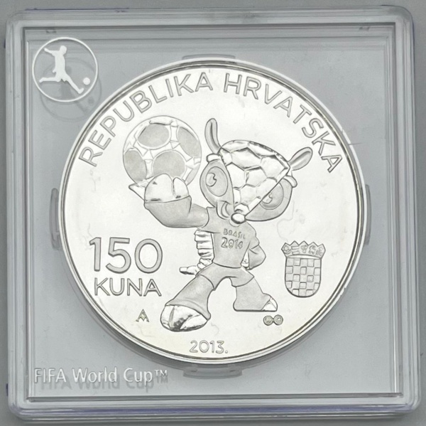 • Moeda Da Croácia - 150 Kuna 2103 - Prata 0.925 - 24.0g - 37.0mm - Proof  - Coleção Copa do Mundo FIFA Brasil 2014 - Na capsula Original de Acrilico - Rara - Emissão 10.000 unidades